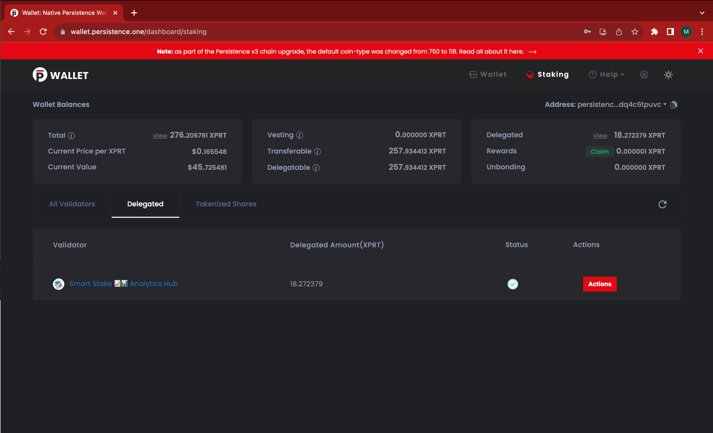 K. Migration done, your staked/delegated tokens will now be visible in the 'Delegated' Section like before.